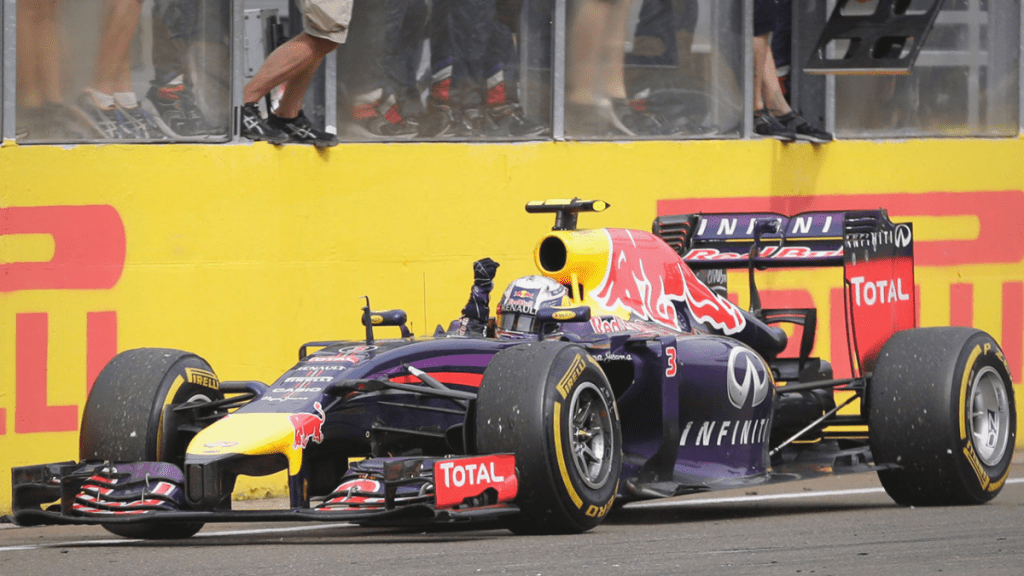 Name a driver with the widest smile on the grid. The 2014 Hungarian Grand Prix saw the smiling Australian, Daniel Ricciardo take only his second win in F1. The race started on the wet Intermediate tyres. A good qualifying saw Ricciardo line up P4, on the grid after Lewis Hamilton missed out on qualifying. However, by the end of the first lap, Ricciardo was down to P6. A heavy crash from Marcus Ericsson and later by Romain Grosjean brought out the safety car and kept it out. It look a bit of luck and a good call from the team to pit Ricciardo under the safety car to emerge P1 after the first round of tyre changes. When the race restarted, Jenson Button overtook Ricciardo into turn 1 and the race was neutralised under safety car again as Sergio Perez spun and crashed down the pit straight. With 4 laps to go, Ricciardo was fighting Hamilton in P2 and Fernando Alonso, just ahead in P1. He caught Hamilton by surprise by taking the inside line into turn 3 before doing the same to Alonso, just one lap later out of turn 2.