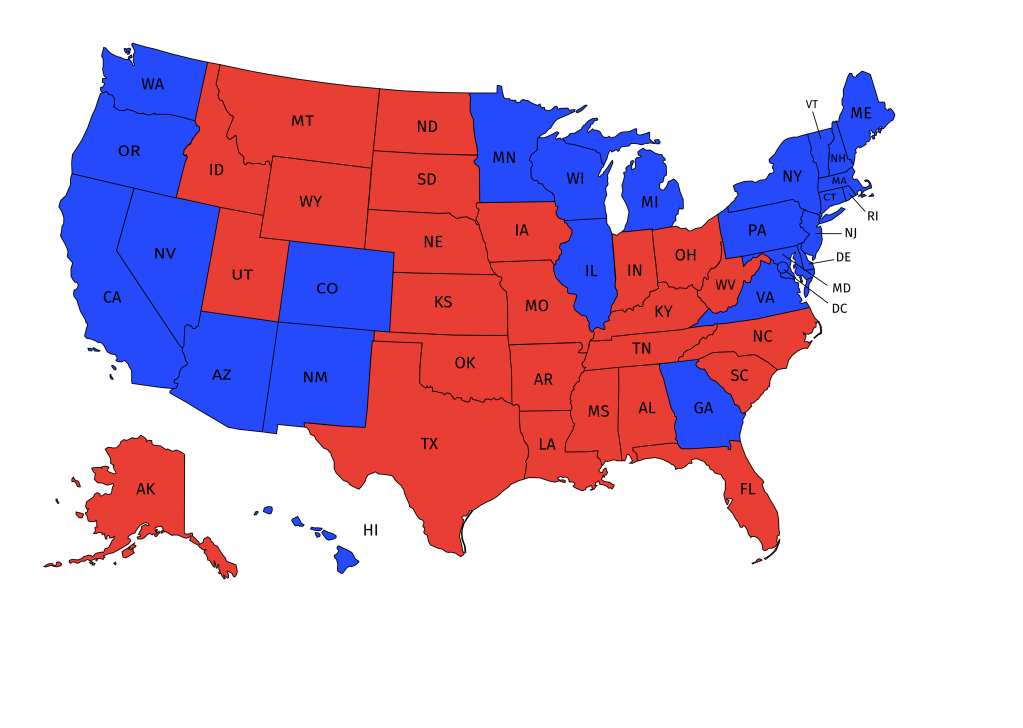 Every 4 years, we see a coloured map of the US and this year it looks like this: