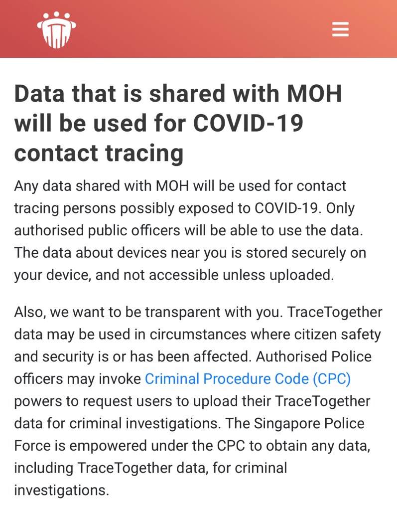 What troubles me is… why undermine the efficacy of TT as a HEALTH security app? The purpose of TT is to ensure we keep COVID manageable through efficient yet non-intrusive contact tracing methods. If uptake of TT is a concern and the government wants residents to be supportive of this efficient contact tracing program, then the last thing you want to be is deceitful over how the data is used.