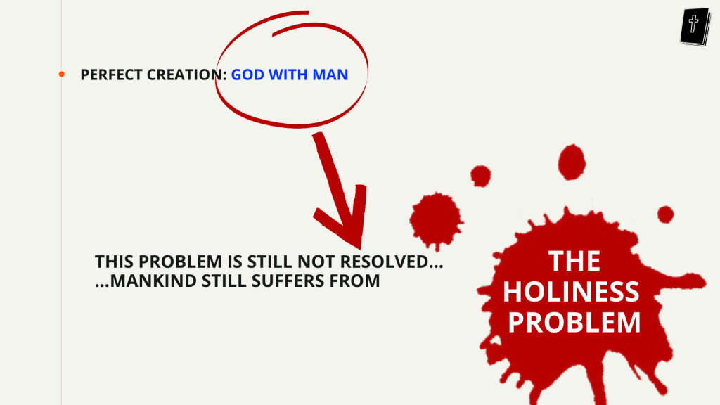 Mankind still suffers from the Holiness problem! In God’s perfect creation, God had intended for Him and man to live together in close proximity. Yet, because of the sin of man, God is intentionally keeping us at a distance, for our own good. This is the holiness problem.